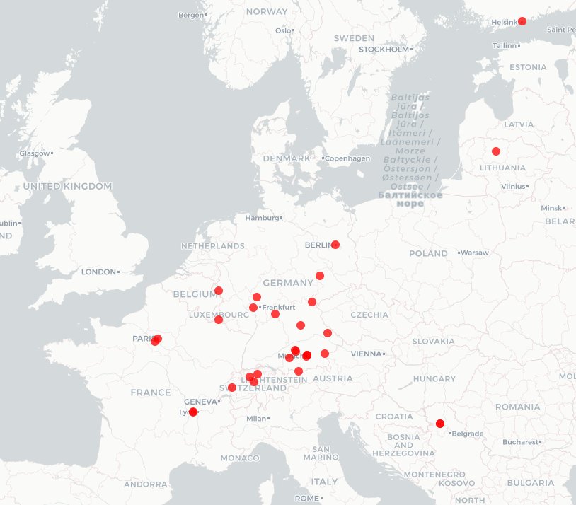 Kaart: Locaties in Europa waar de verschillende automatische systemen staan. (bron: https://www.zaum-online.de/)